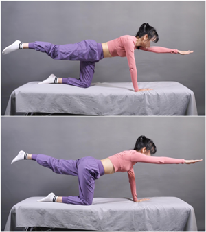 ② 目的:锻炼臀肌、腰肌,对于久坐、腰痛的人群能有效缓解不适,动作注意收腹、绷紧臀部。